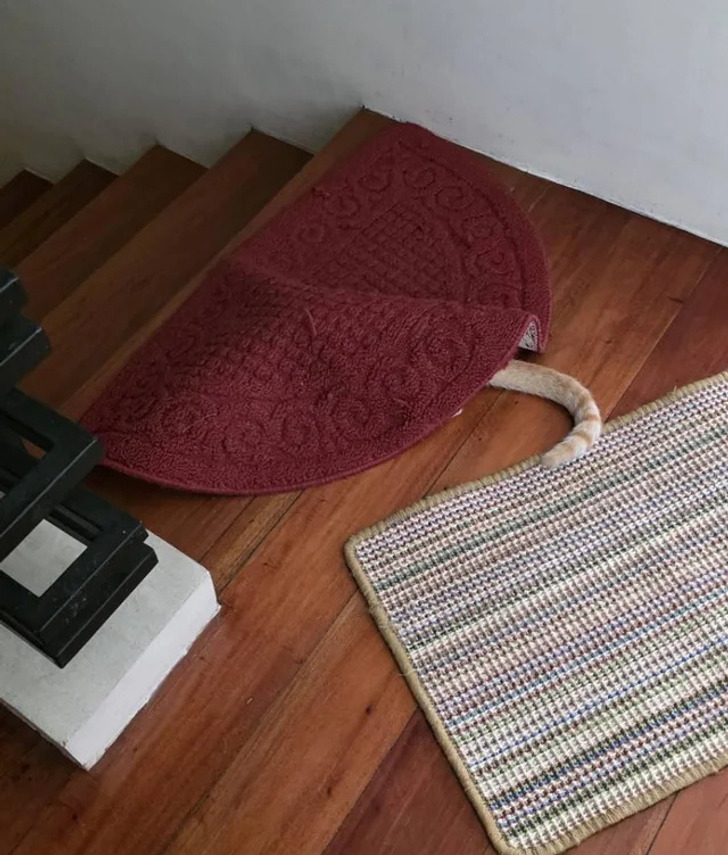 „Oto jak moja kotka chowa się przed kociakiem. Świetna robota!”