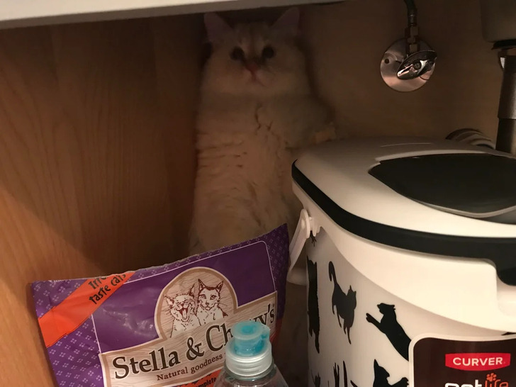 „Mój kot zniknął prawie na cały dzień. Przeszukałam cały dom i oto gdzie go znalazłam”.