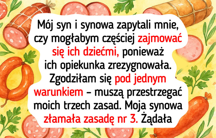 Syn uznał, że zasady są uczciwe i łatwe do przestrzegania, więc ustaliliśmy, że będę opiekować się wnukami trzy razy w tygodniu. Jednak w zeszłym tygodniu synowa złamała zasadę nr 3. Niespodziewanie pojawiła się u mnie w południe z dziećmi, a mnie nie było w domu.