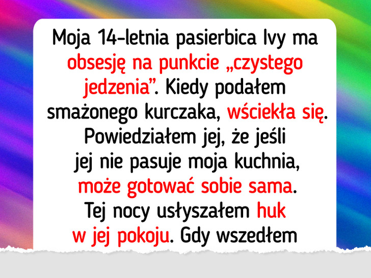 Jeden ojczym zwrócił się do nas, aby podzielić się historią trudnej relacji ze swoją 14-letnią pasierbicą. Ivy nalega, by to ona decydowała o rodzinnym menu, stosując swoje zasady „czystego jedzenia”, ale on odmawia podporządkowania się. Kiedy w końcu wprowadził twarde granice, w domu wybuchł prawdziwy dramat.