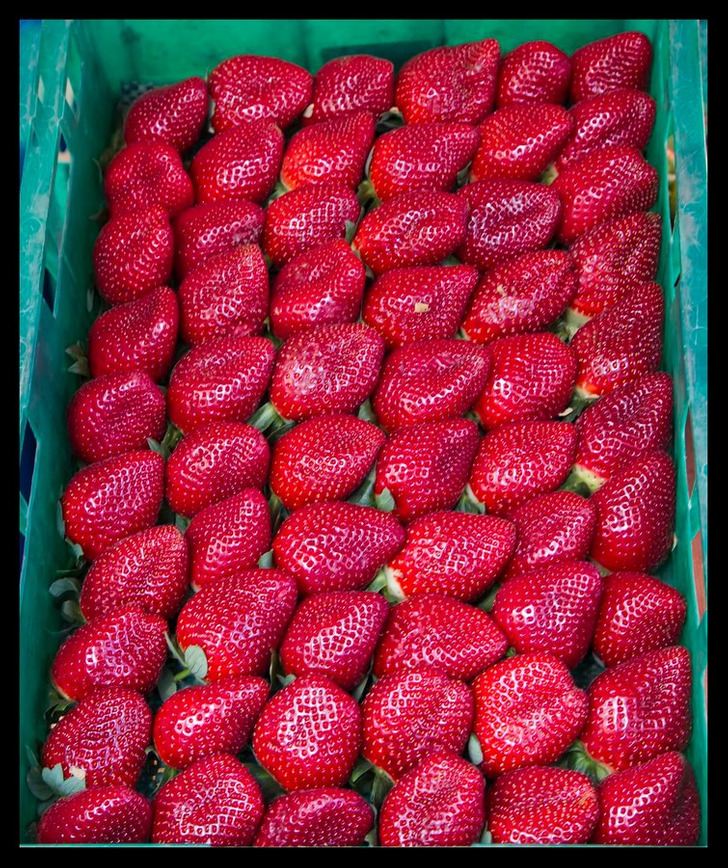 🍓 Kolor i intensywność: Prawdziwa polska truskawka wyróżnia się intensywną, jasnoczerwoną barwą i charakterystycznym blaskiem. Wygląda na „żywą” i soczystą. Importowane owoce często mają blady odcień lub przeciwnie — wydają się nienaturalnie ciemne.