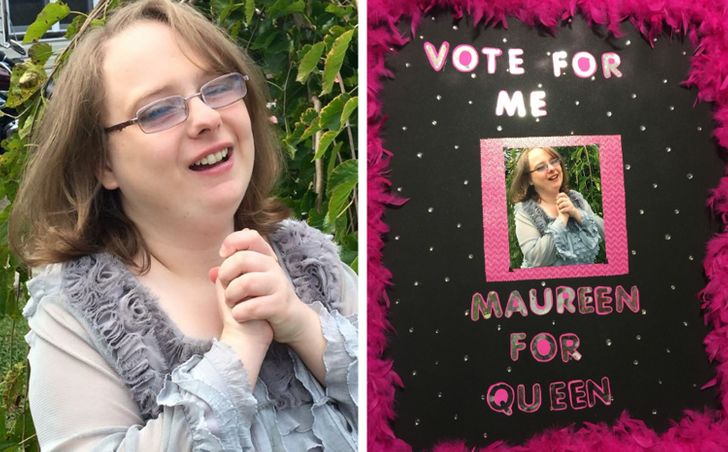 „To moja kuzynka Maureen, która chodzi do klasy maturalnej w Roane County High School. Jest bardzo upośledzona umysłowo — rozwojowo już zawsze będzie na poziomie siedmiolatki. Uwielbia księżniczki, a jej pokój wygląda jak Disneyland. W tym roku jej znajomi z klasy zorganizowali kampanię mającą na celu przemianę Maureen z księżniczki w królową. Zrobili nawet dla niej koszulki”.